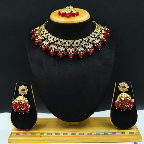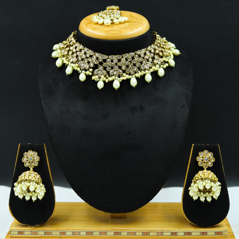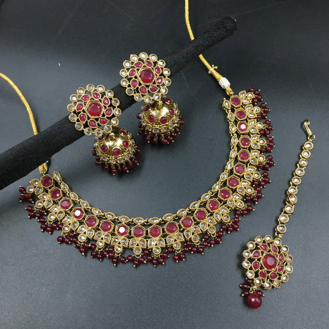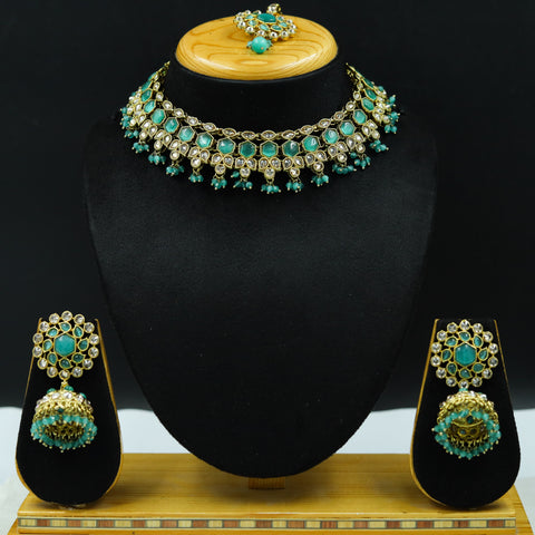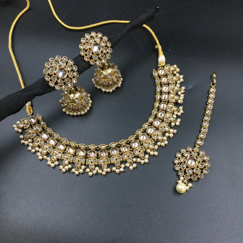 Base - Silver & Copper AlloyEarring Closure - Push BackSet Contains - 1 Necklace + 2 Earrings + 1 Maang TikkaNecklace Closure - Silk Dori This necklace is a timeless piece of jewelry that is...