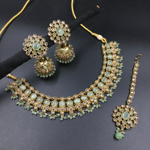 Necklace Closure - Silk Dori Earring Closure - Push BackBase - Silver & Copper Alloy Our stunning Polki Necklace, a harmonious blend of classic charm and modern flair. This necklace showcases an intricate design crafted...
