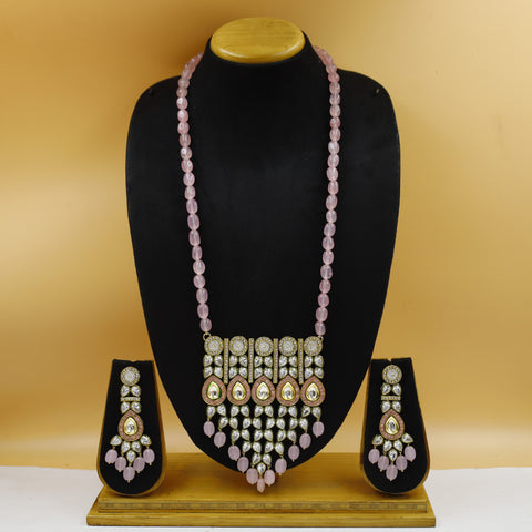 Stone - Kundan, Ruby, CZ (American Diamond)Necklace Closure - Silk DoriEarring Closure - Push BackBase - Silver & Copper AlloySet Contains - 1 Necklace + 2 Earrings Earring: Height- 8 cm , Width- 3.2 cm...