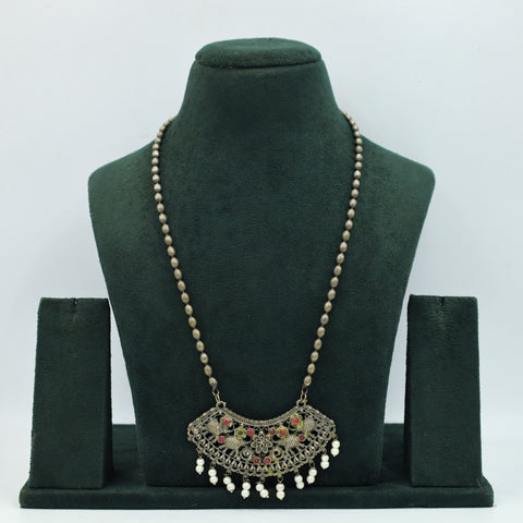 Set Contains - 1 Necklace + 2 EarringsEarring Closure - Push BackBase - Silver & Copper Alloy