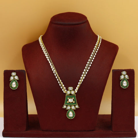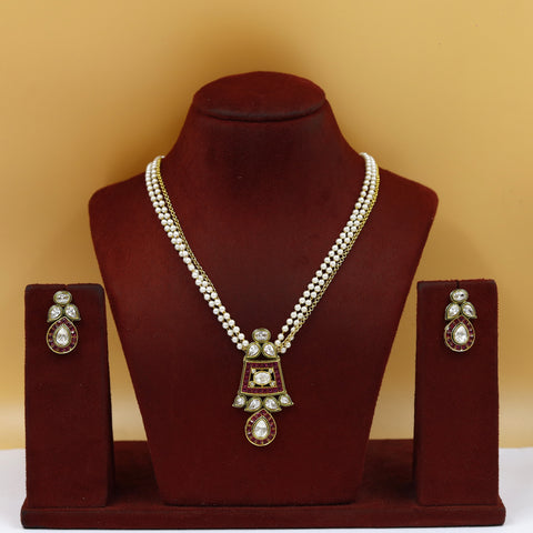 Base - Silver & Copper AlloyPack contains - 1 Pendant (22 Inch Pearl Chain Attached) + 2 EarringsPendant Closure - Chain Hook
