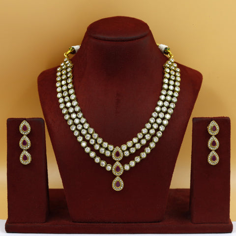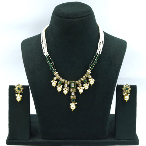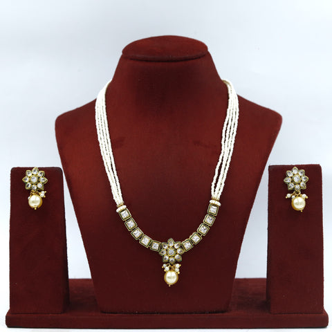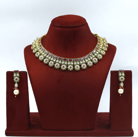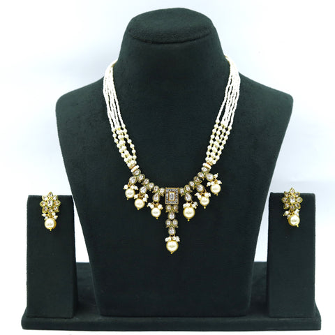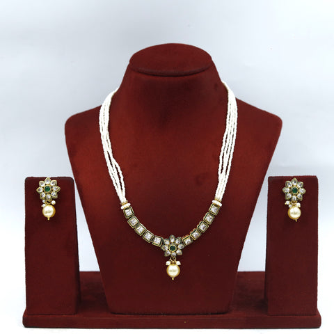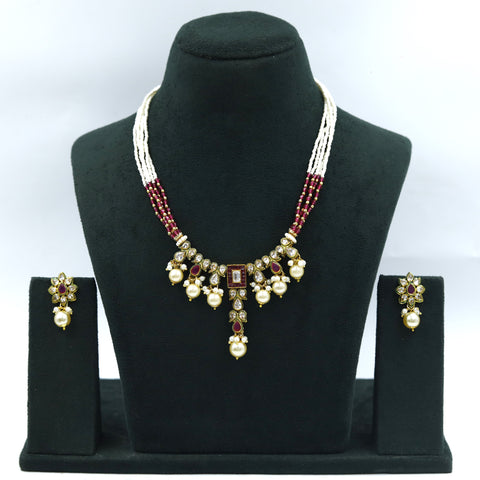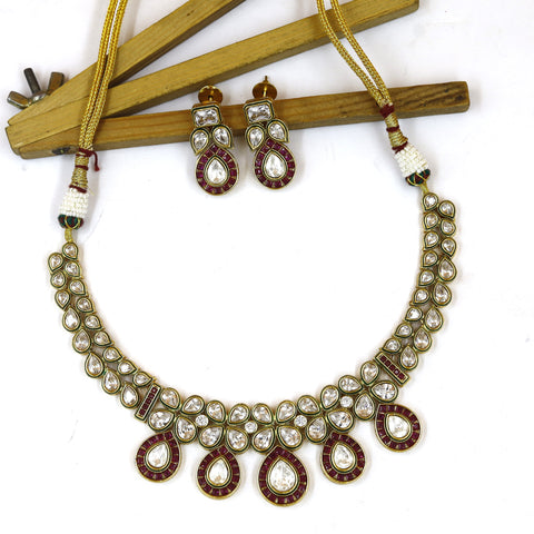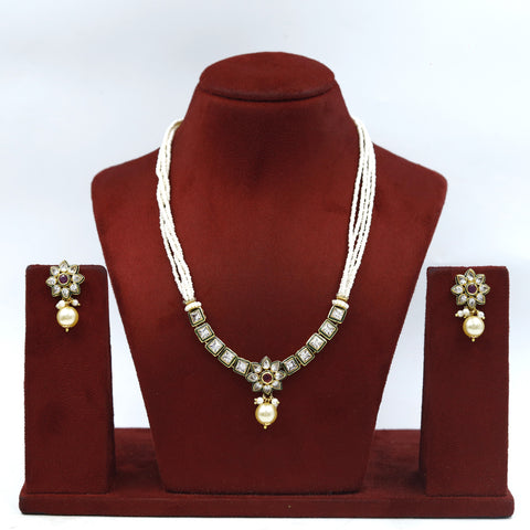 Set Contains - 1 Necklace + 2 EarringsEarring Closure - Push BackNecklace Closure - Silk DoriBase - Silver & Copper Alloy