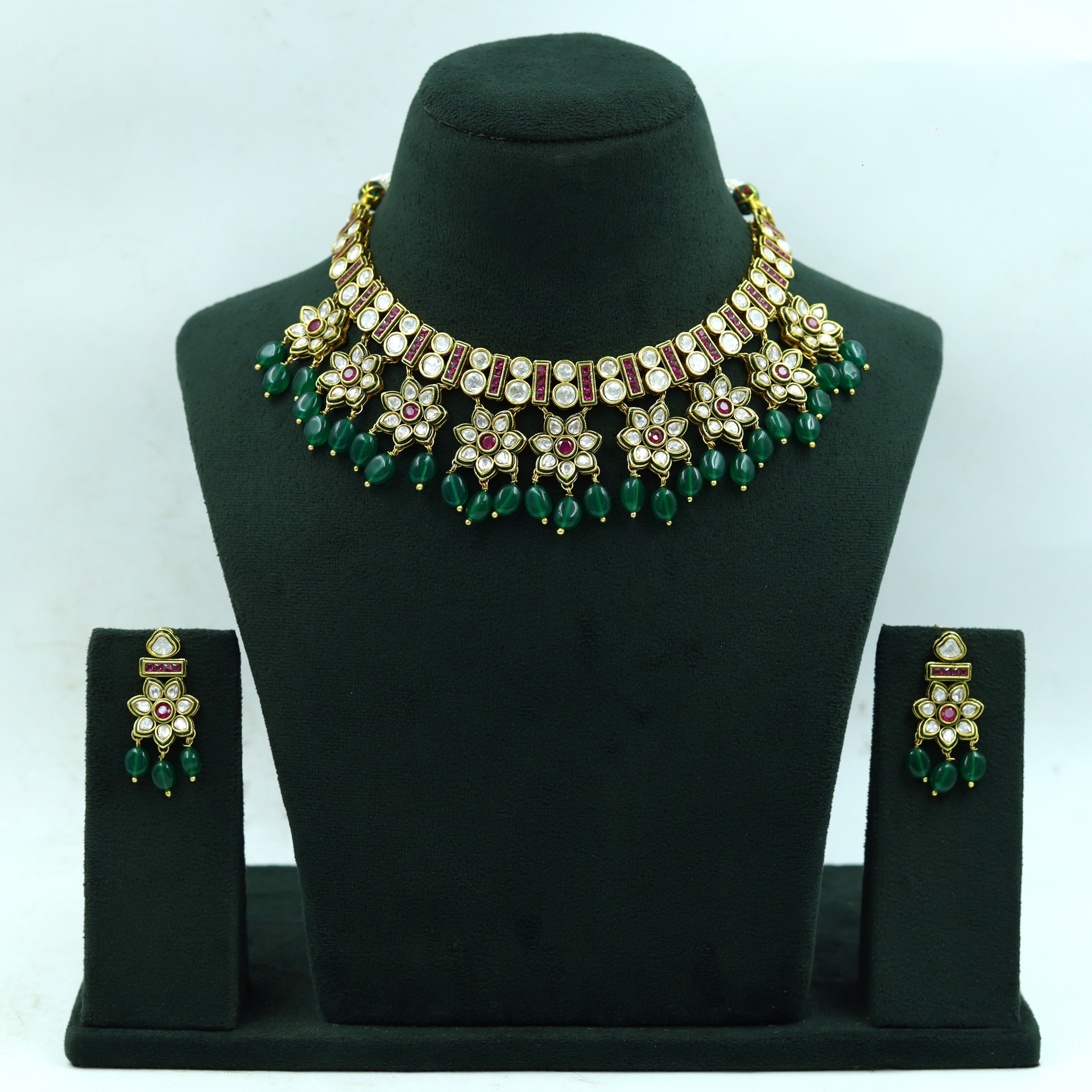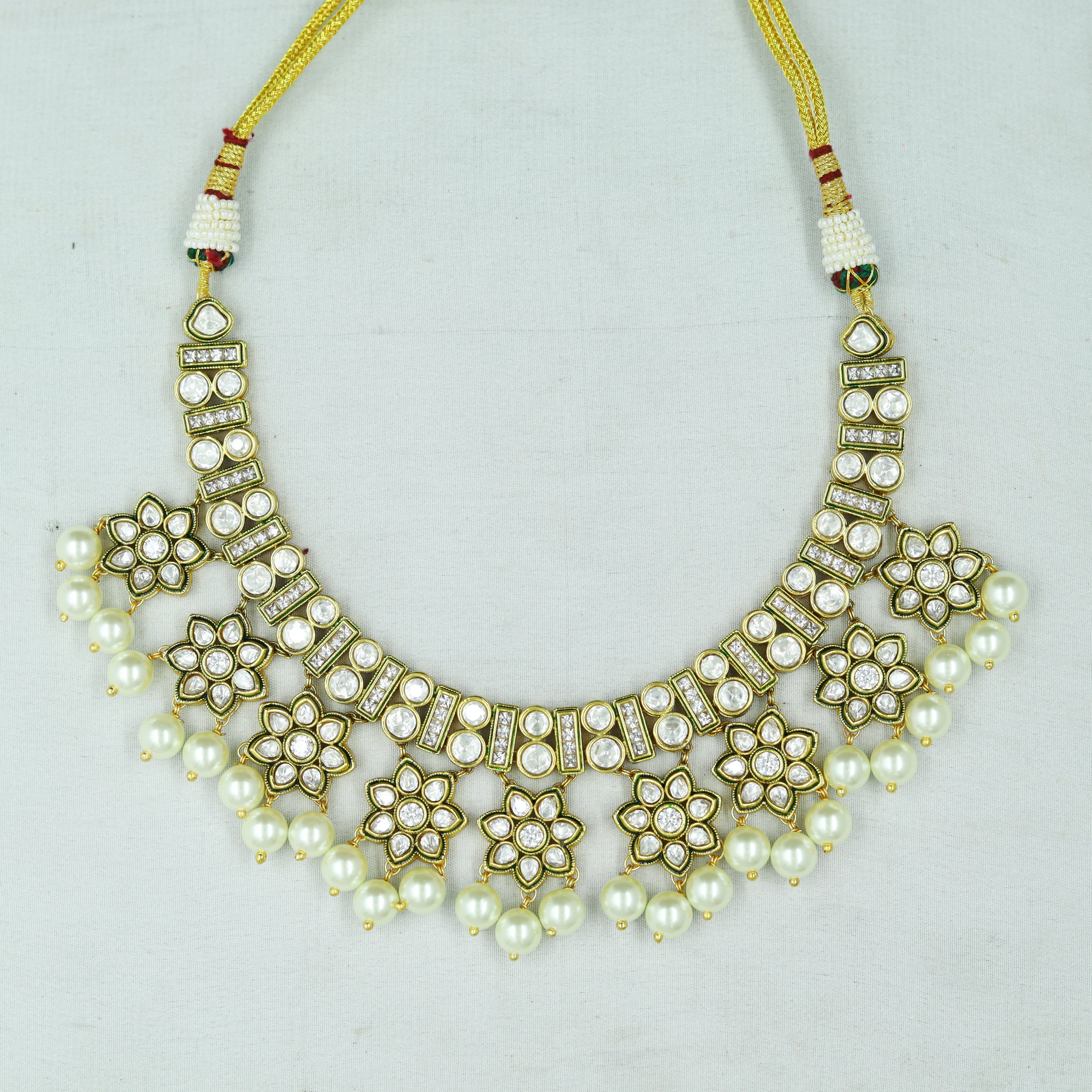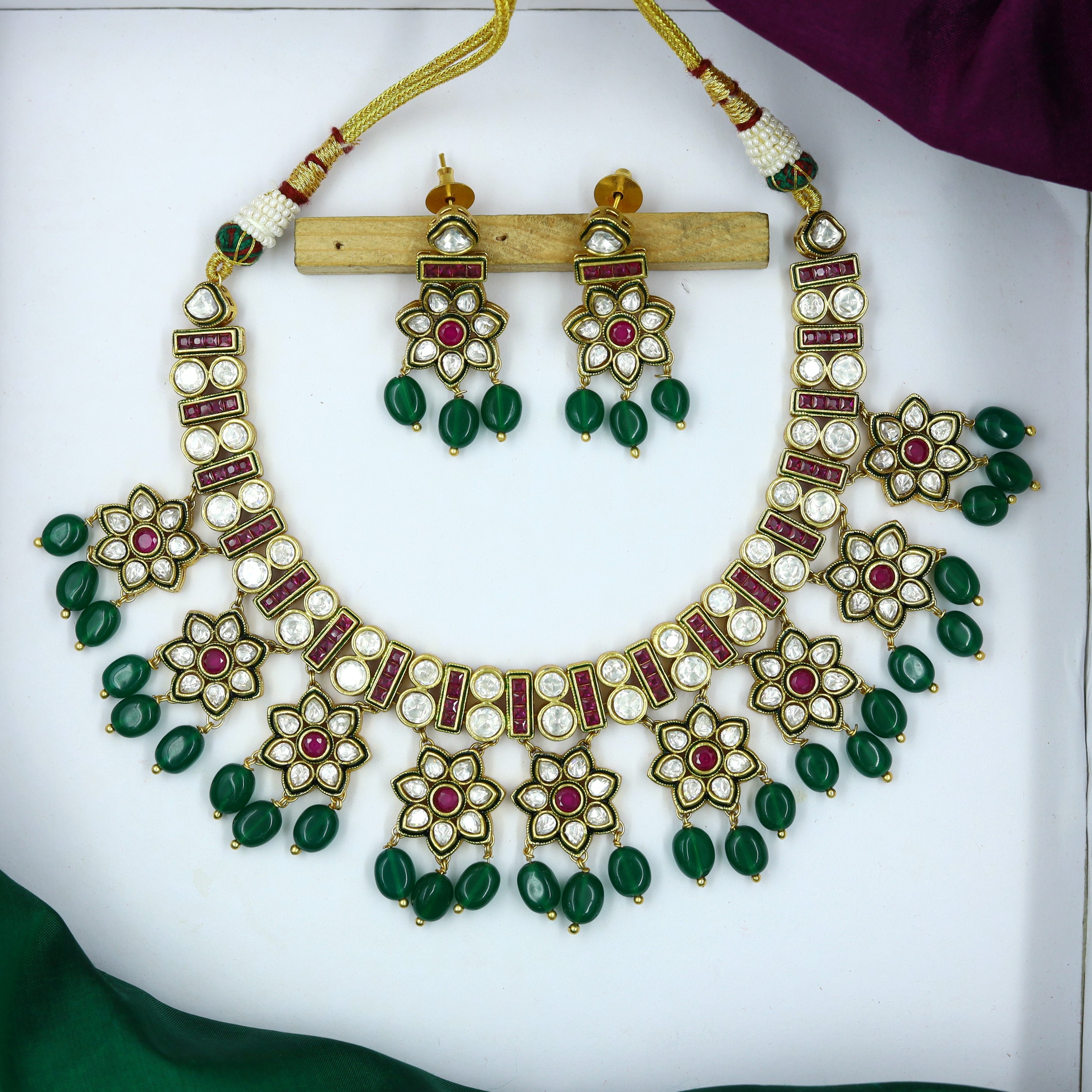 Base - Silver & Copper AlloySet Contains - 1 Necklace + 2 EarringsNecklace Closure - Silk DoriEarring Closure - Push Back