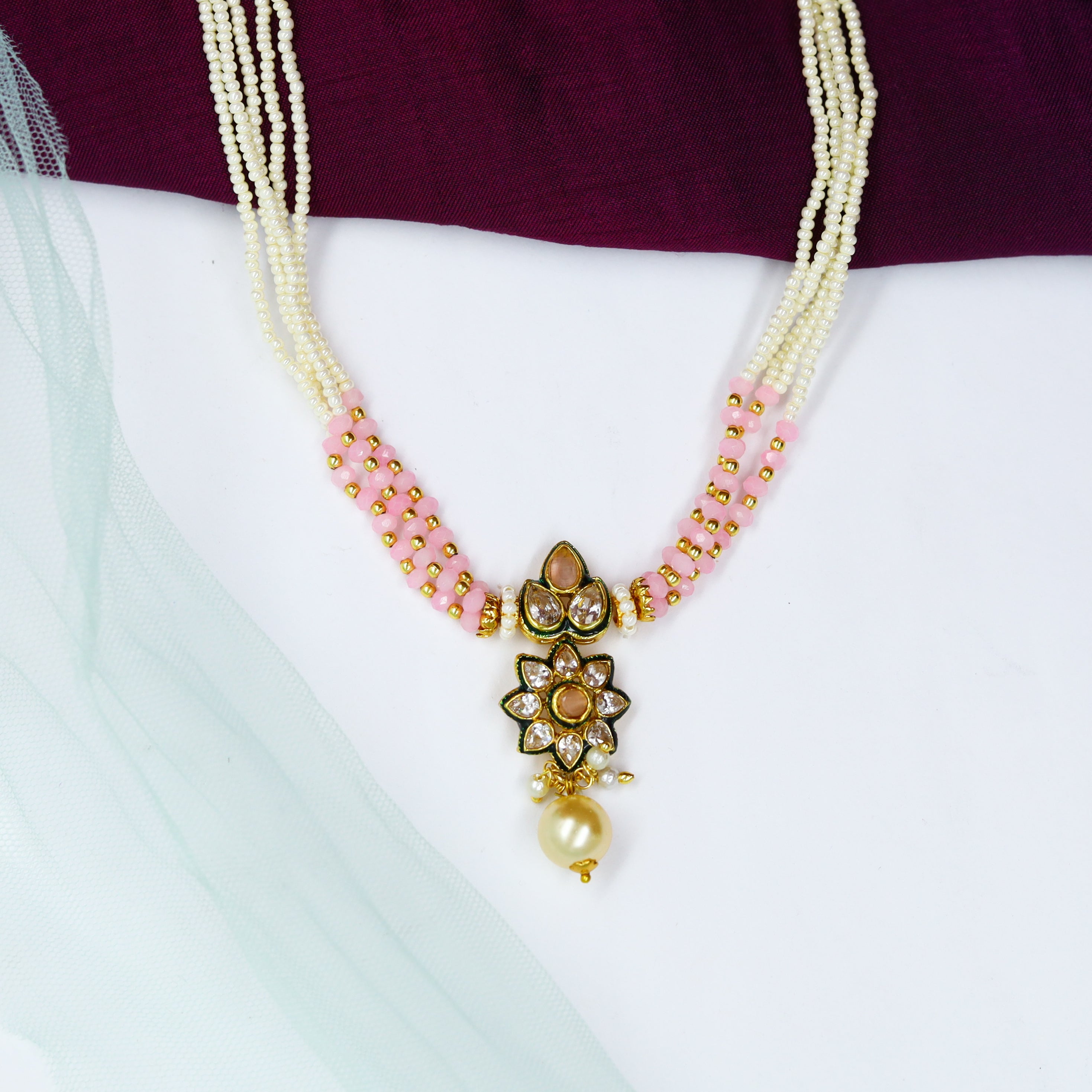 Base - Silver & Copper AlloyPack contains - 1 Necklace + 2 EarringsPendant Closure - Silk DoriEarring Closure - Push Back