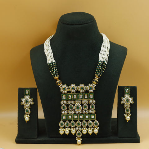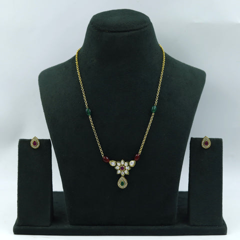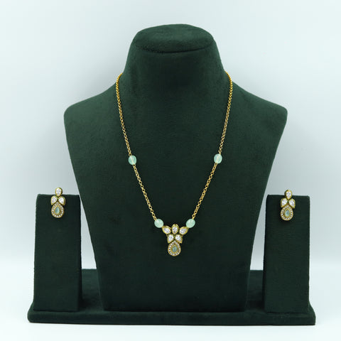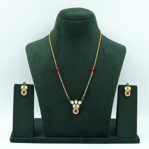 Base - Silver & Copper AlloyEarring Closure - Push Back Our enchanting Polki Pendant Set - a perfect fusion of heritage and contemporary allure. This exquisite set features a meticulously crafted pendant and earrings adorned...