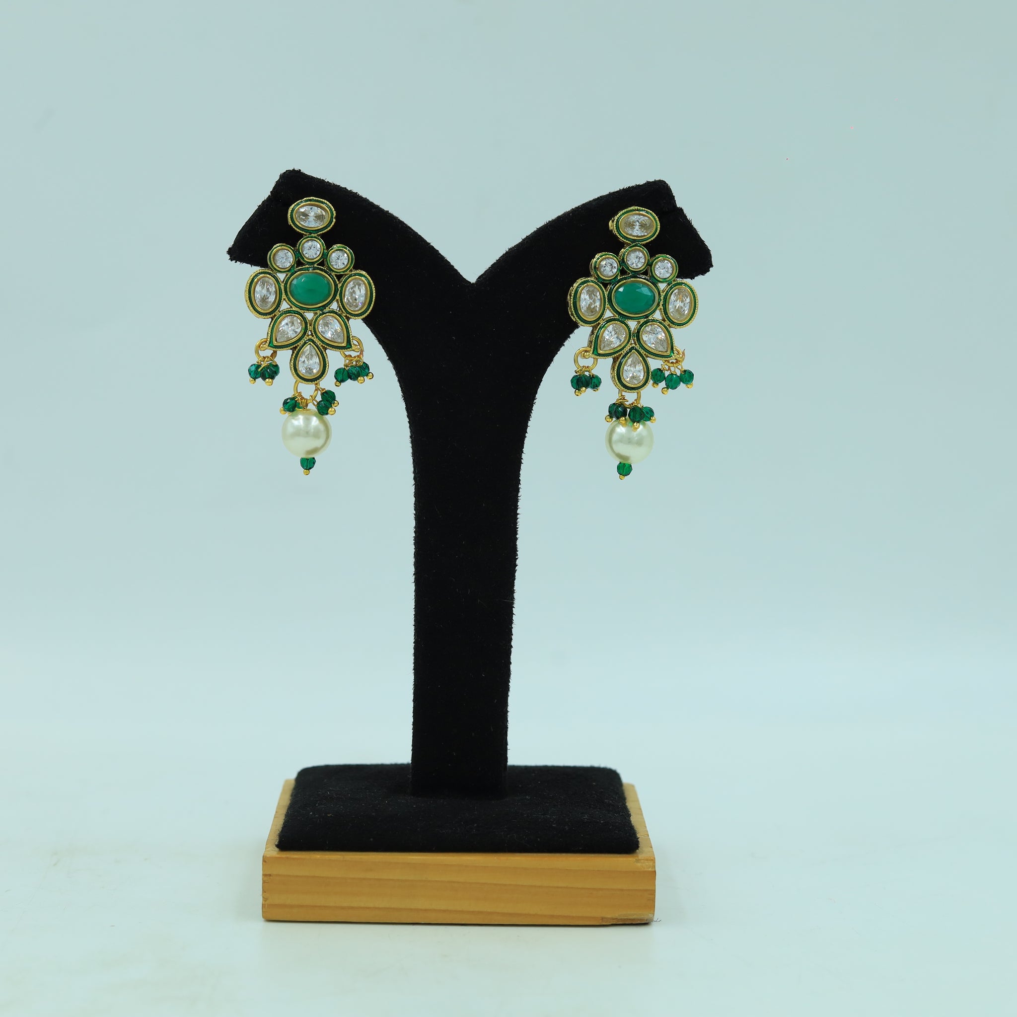 Earring Closure - Push BackBase - Silver & Copper Alloy Earring: Height - 4.5 cm , Width - 1.4 cm Earring Weight - 15 gram ( 7.5Â gm each earring) Our mesmerizing Polki Pendant Set,...