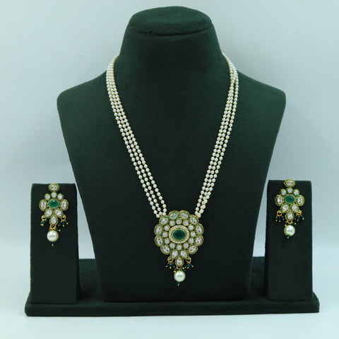 Stone - Polki, PearlPendant Closure - Chain HookEarring Closure - Push BackBase - Silver & Copper AlloySet Contains - 1 Pendant + 2 Earrings. Note - Chain shown is just for photography purpose and is not...