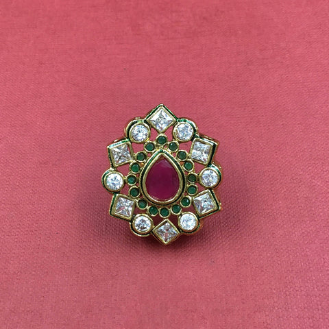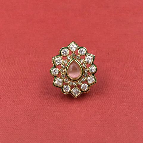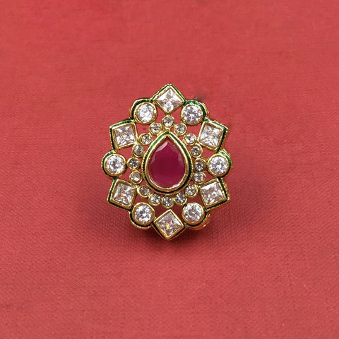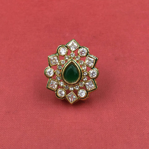 Base - Silver & Copper Alloy Polish - Gold Our exquisite Polki Ring, delicately adorned with a captivating gold polish that exudes timeless elegance. This versatile ring is designed to complement any dress effortlessly, making...