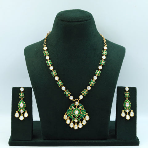 Set Contains - 1 Necklace + 2 Earrings + 1 Maang TikkaNecklace Closure - Silk DoriEarring Closure - Push BackBase - Silver & Copper Alloy
