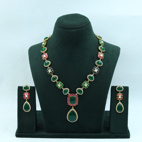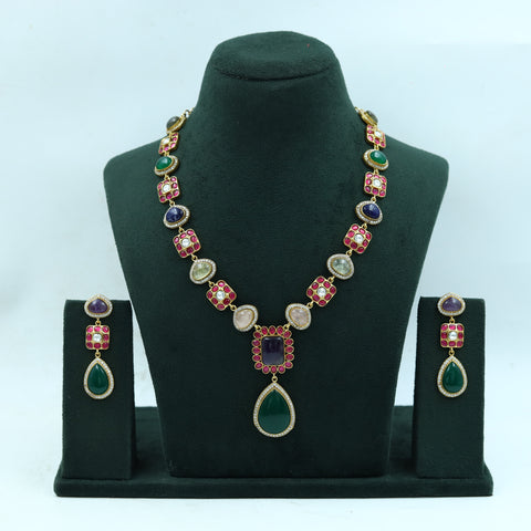 Base - Silver & Copper AlloySet Contains - 1 Necklace + 2 EarringsNecklace Closure - Chain hookEarring Closure - Push Back