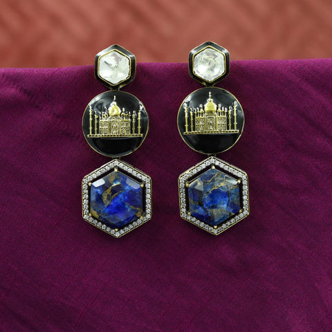 Base - Silver & Copper AlloyEarring Closure - Push Back Height - 8 CM, Width - 3.5 CM Weight - 47 Grams (23.5 Gram for Per Earring)