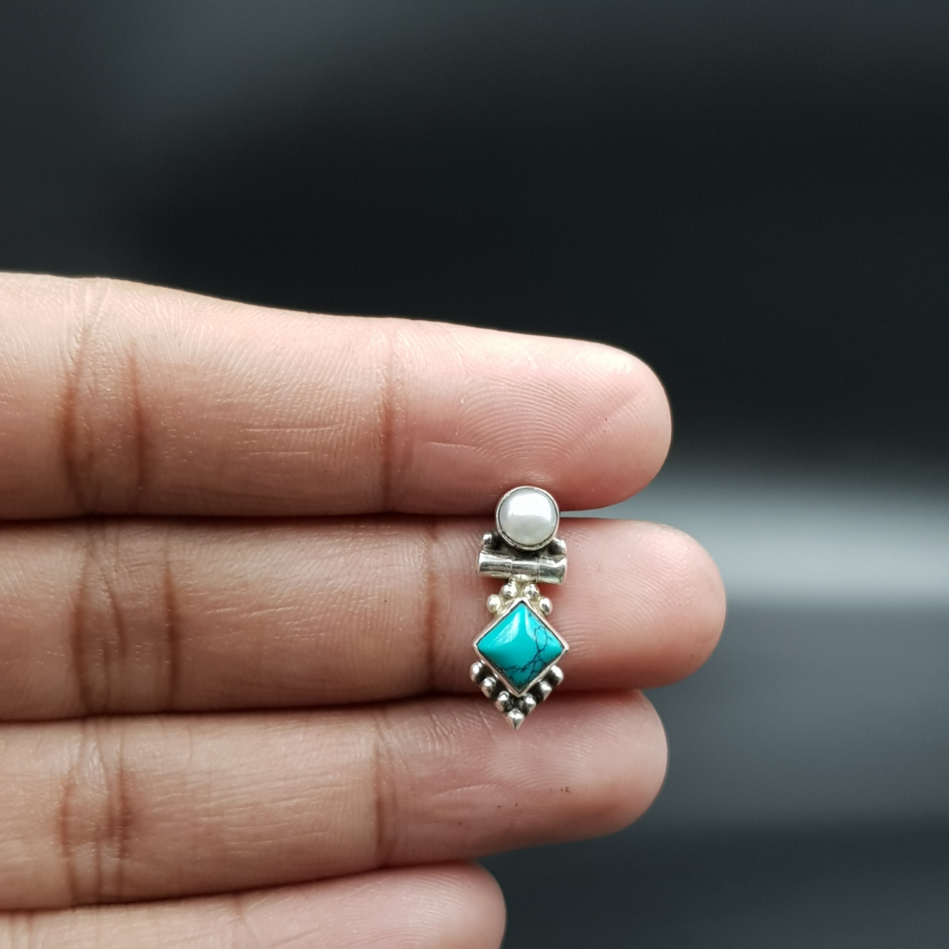 Firozi / Silver Oxidized / Tops/Studs - Rs. 2,484.00