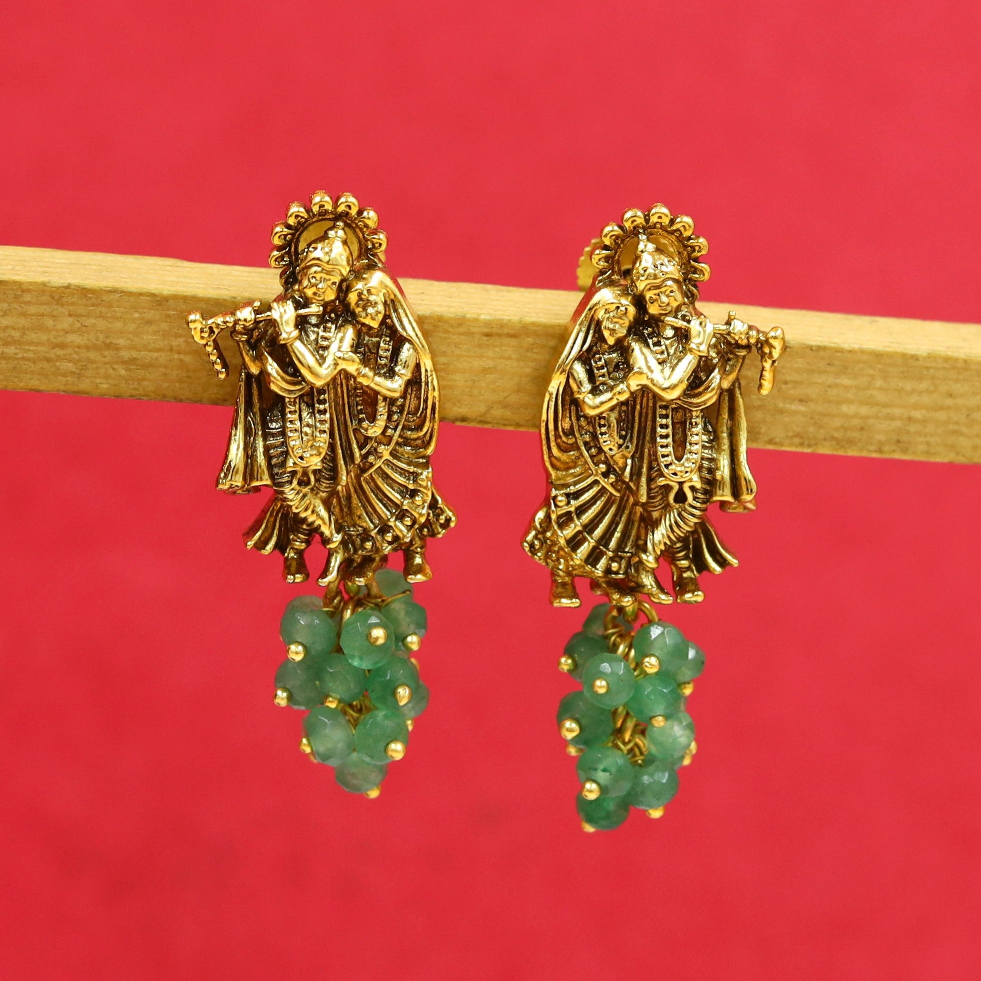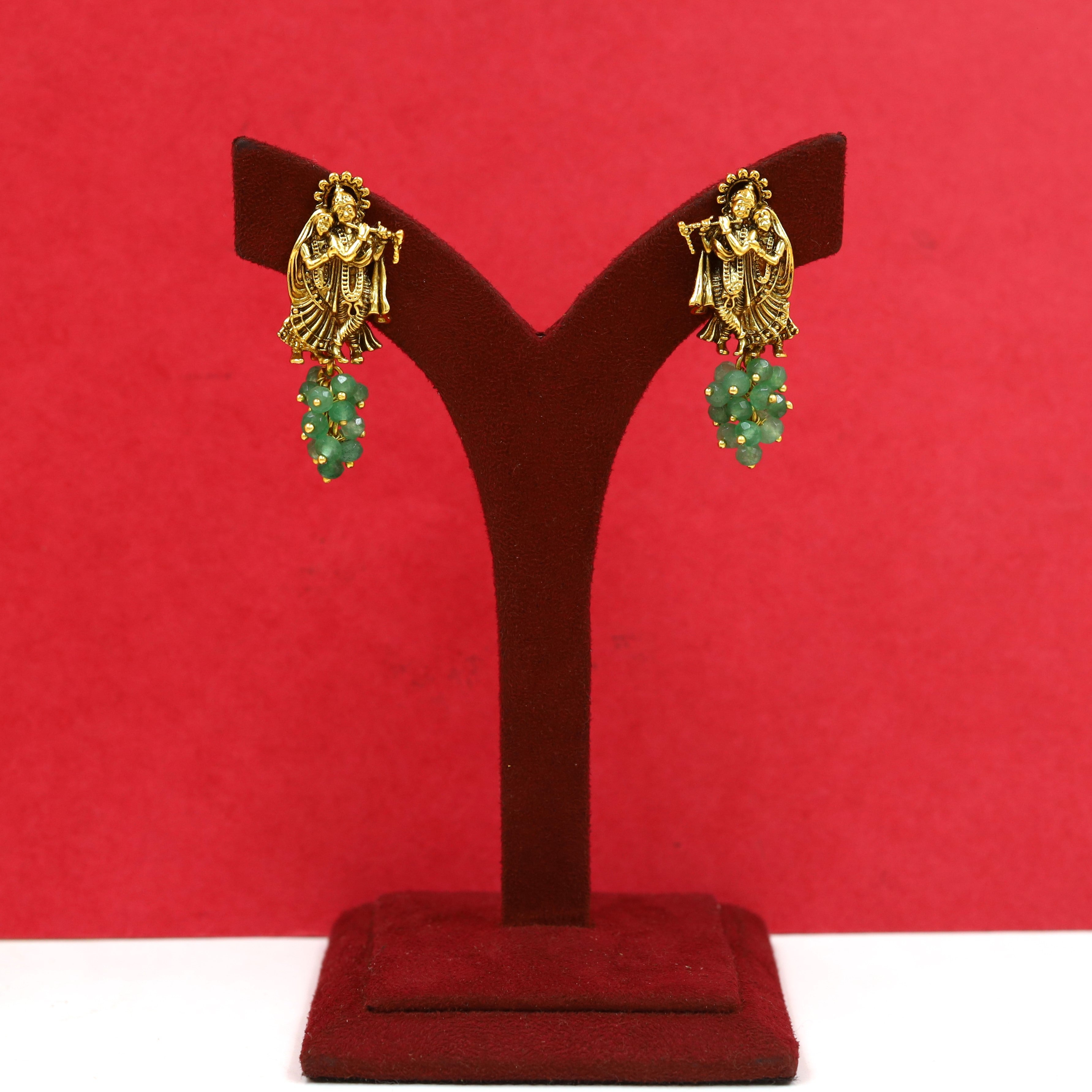 Mint Green / Antique Gold / Light Earring - Rs. 900.00