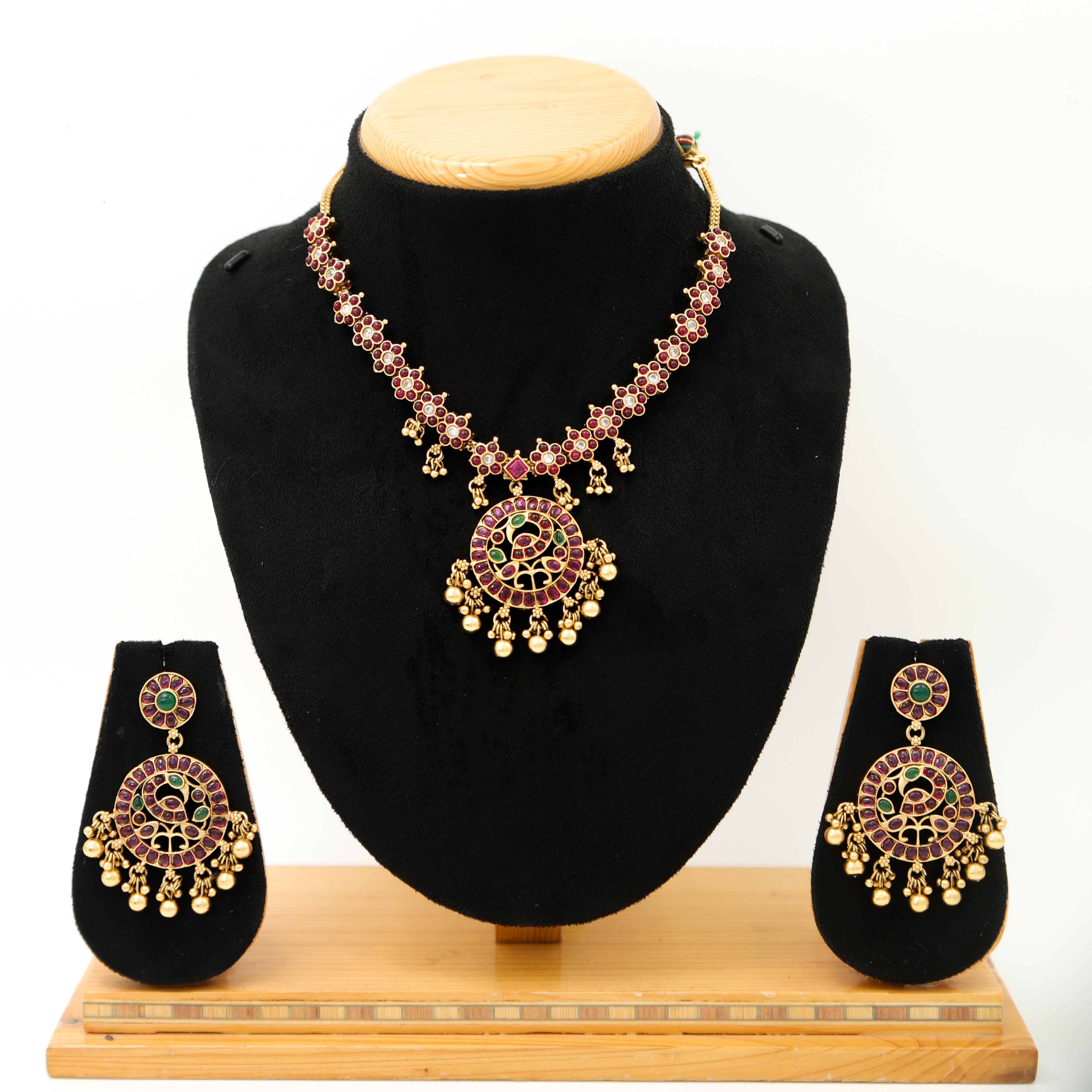Base - Silver & Copper AlloyNecklace Closure - Silk DoriEarring Closure - Push BackPack Contains - 1 Necklace + 2 Earrings