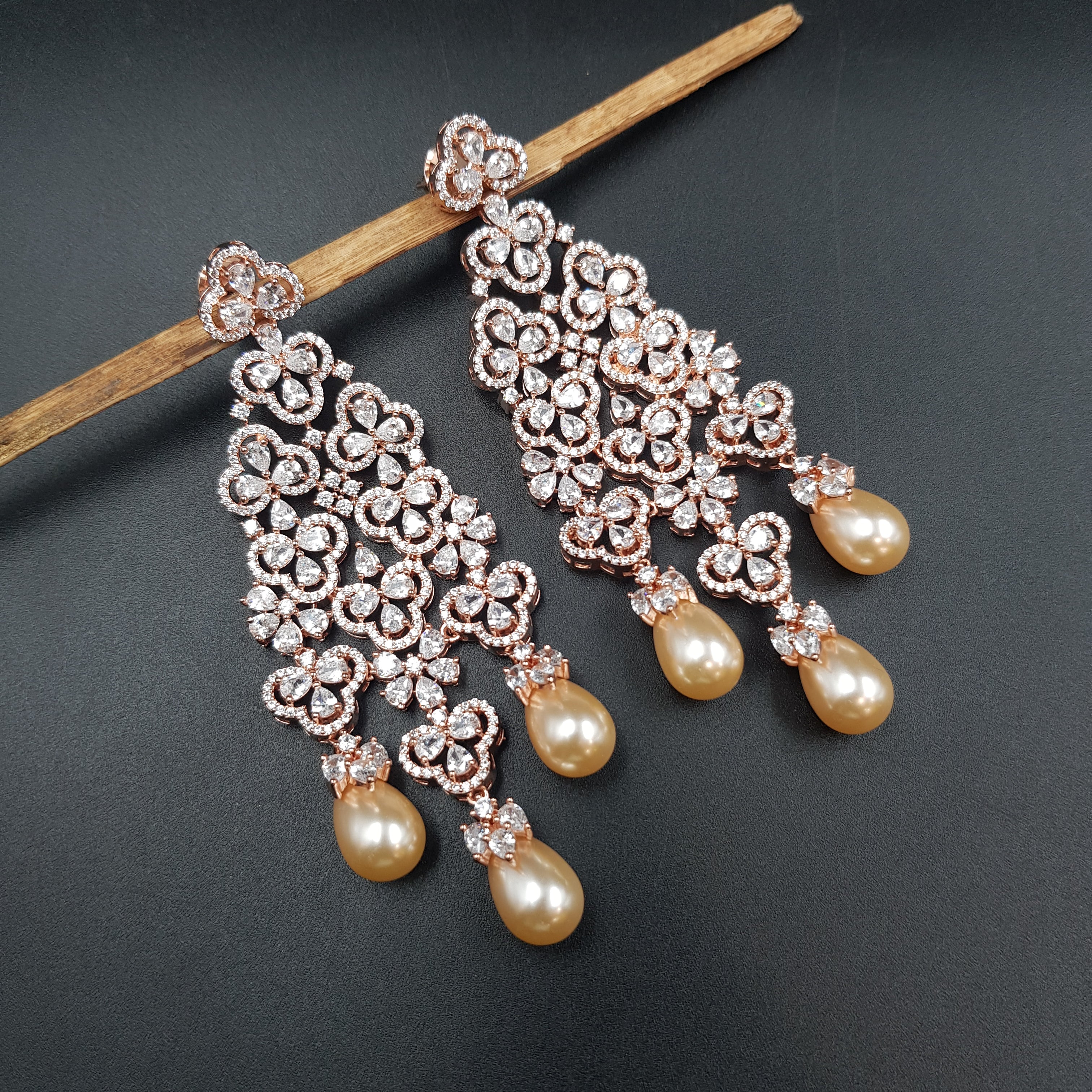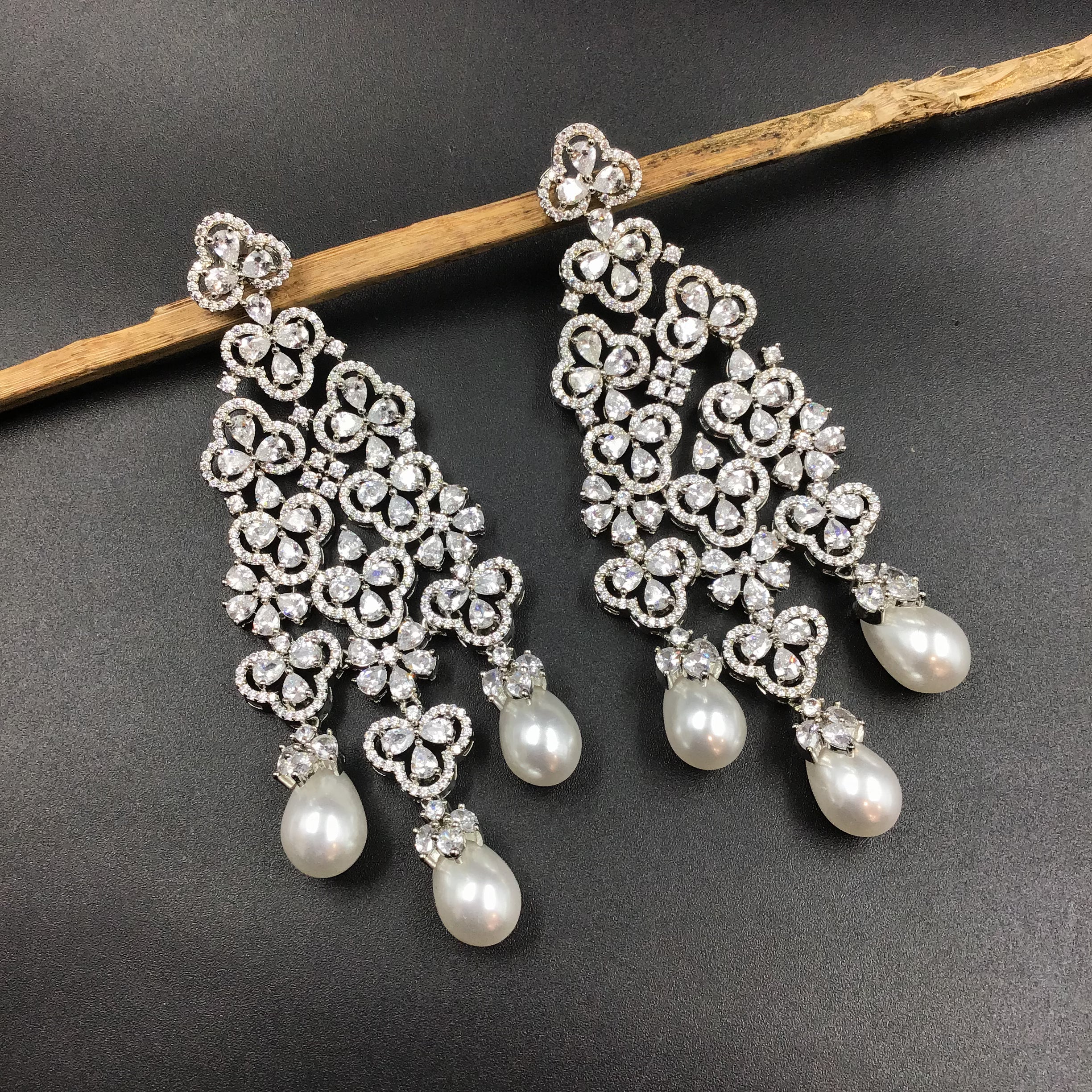 Our exquisite AD Earrings with a stunning white pearl latkan, a true embodiment of elegance and fine craftsmanship. These earrings are designed to make a statement and elevate your style to new heights.The focal point of these earrings is the lustrous white pearl that serves as a captivating latkan. This beautiful pearl adds a touch of sophistication and grace to the overall design, creating a harmonious blend of timeless beauty and contemporary style.