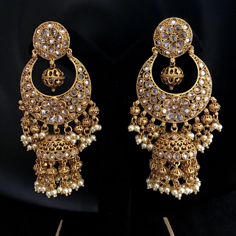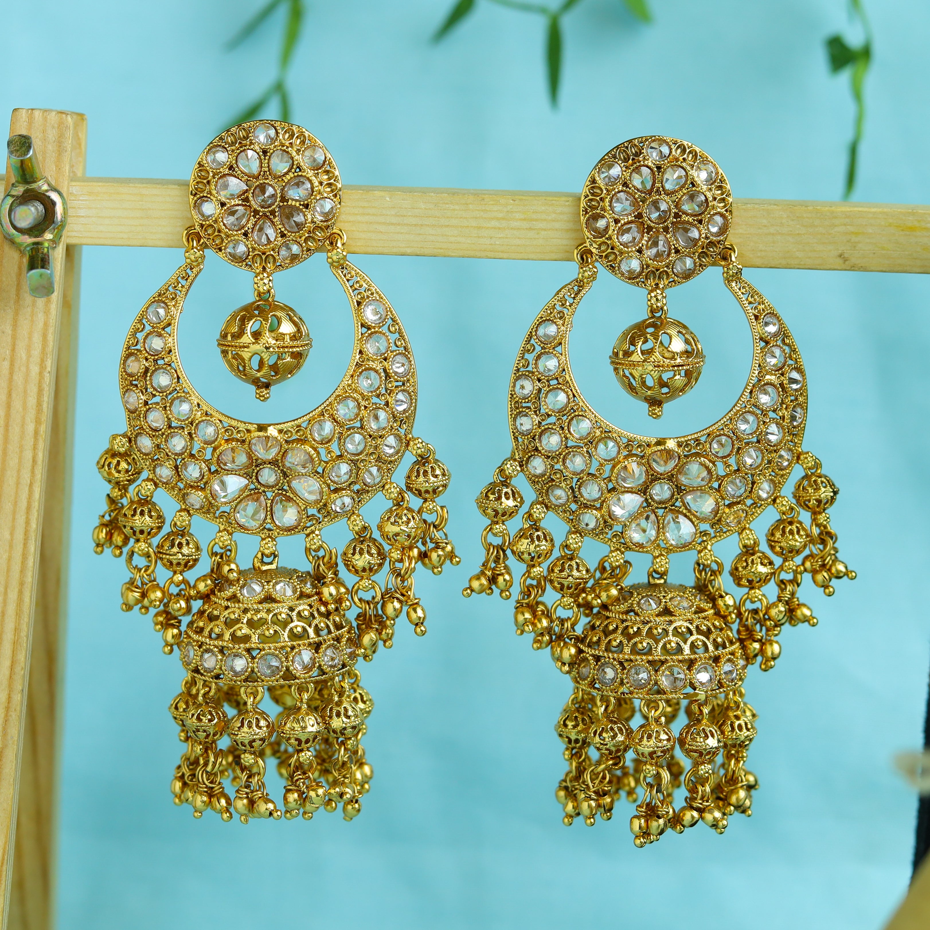 The jhumki design of these earrings features intricate detailing, giving them an elegant and timeless look. These earrings are perfect for any occasion, whether you're dressing up for a formal event or adding a touch of glamour to your everyday look.