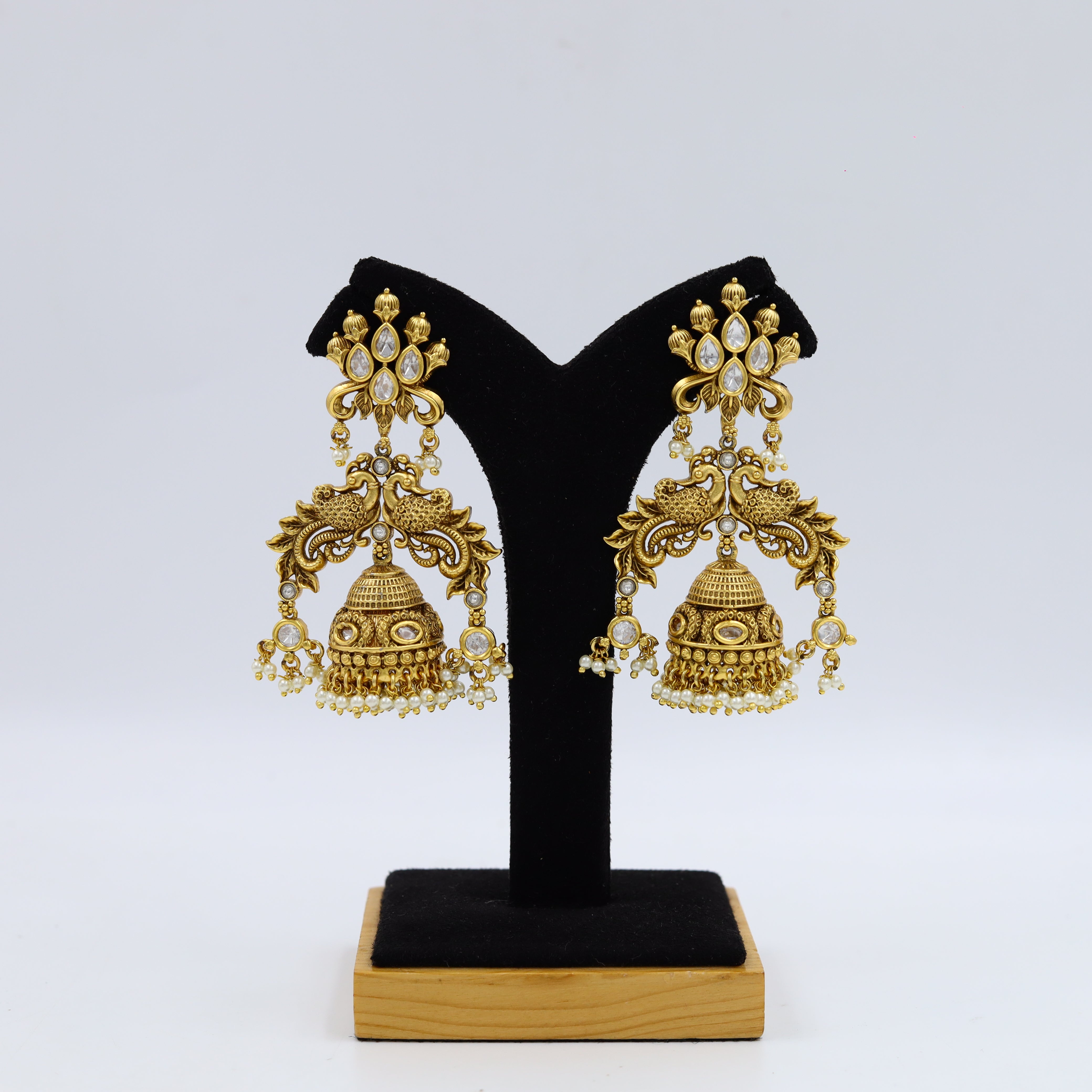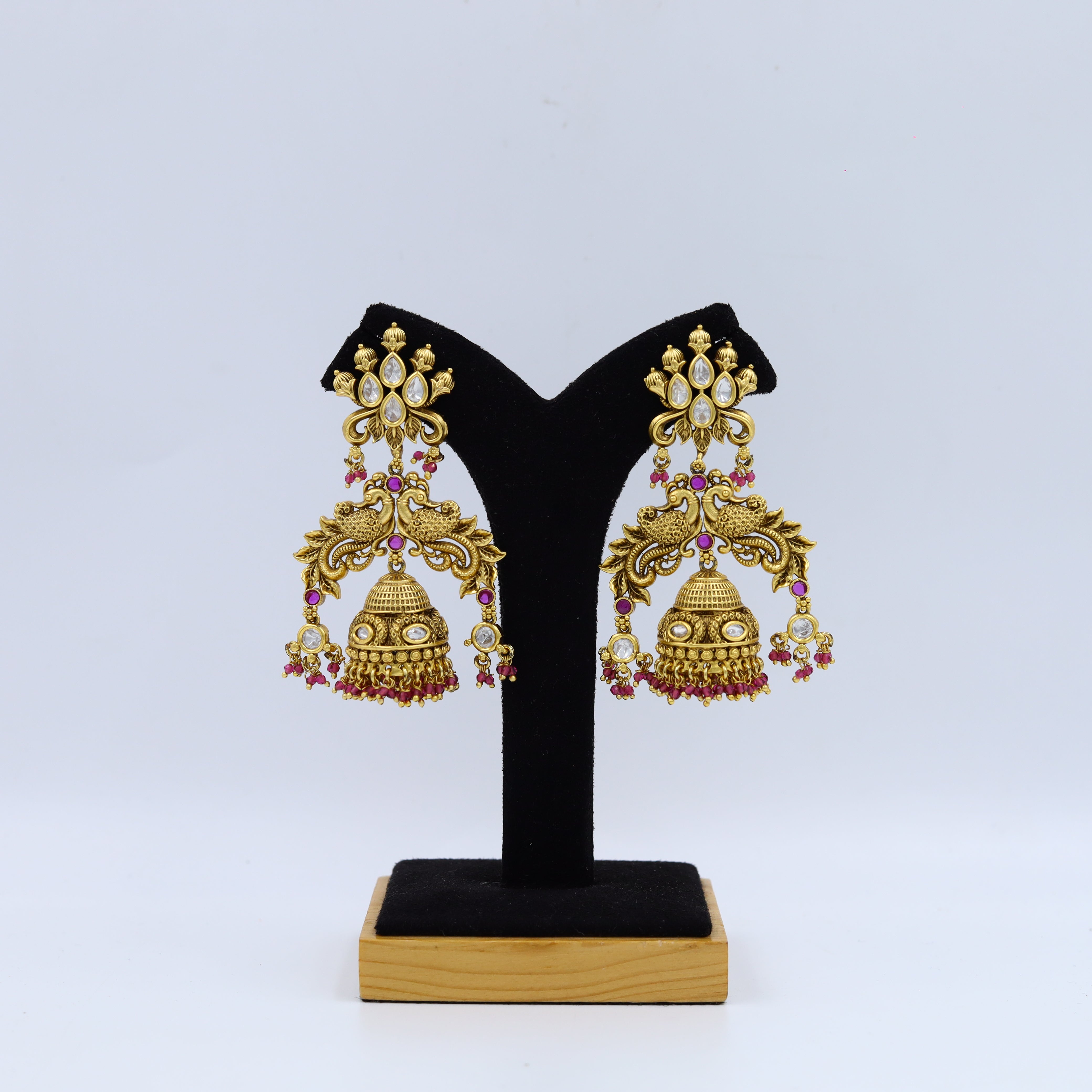 The peacock design on these earrings is truly remarkable and adds a touch of glamour to the piece. Peacocks are a popular motif in Indian jewelry and are known for their grace, beauty, and elegance. The intricate detailing on the peacock design is a testament to the skill and craftsmanship of the jewelry maker.