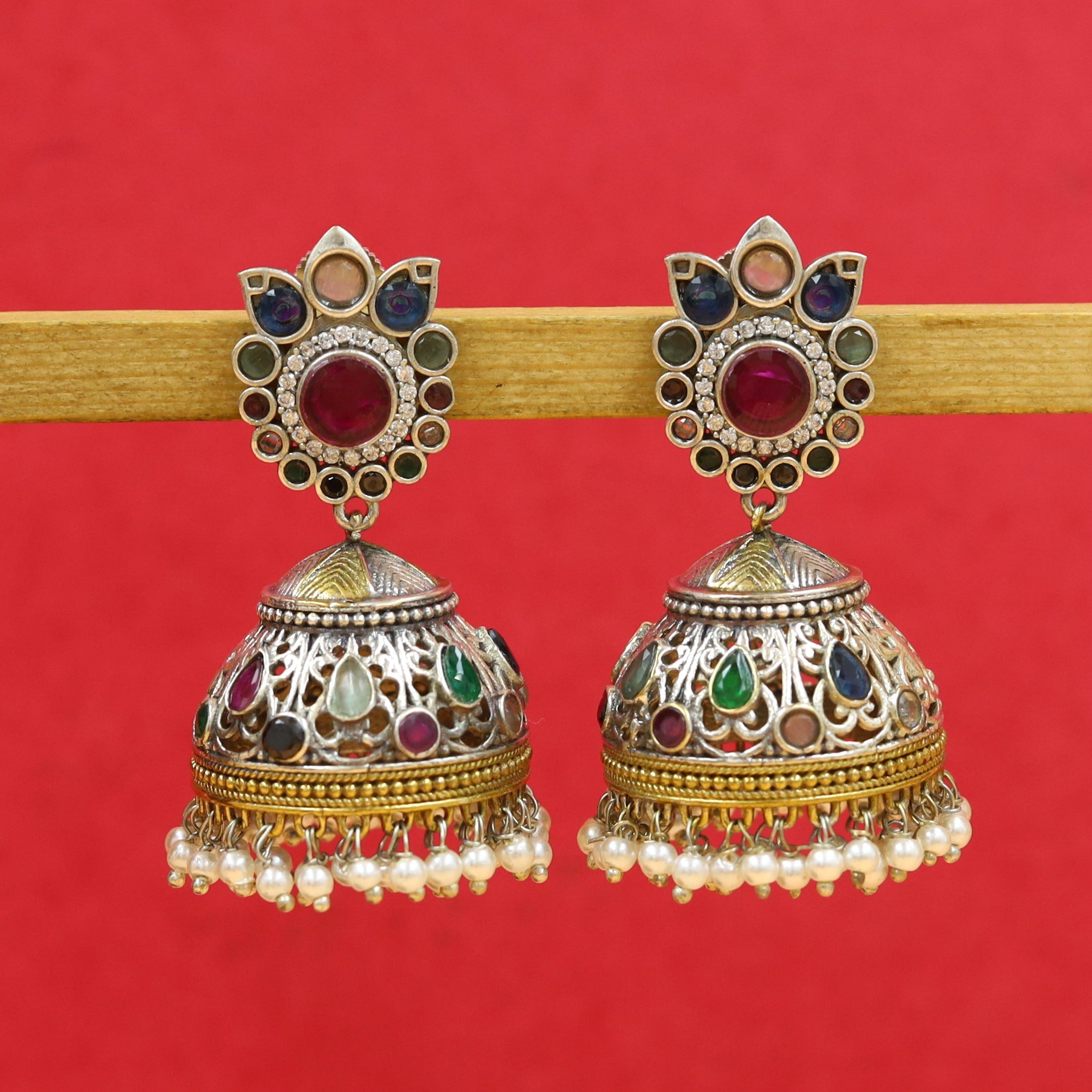 Multi / Silver Oxidized / Jhumki - Rs. 1,400.00