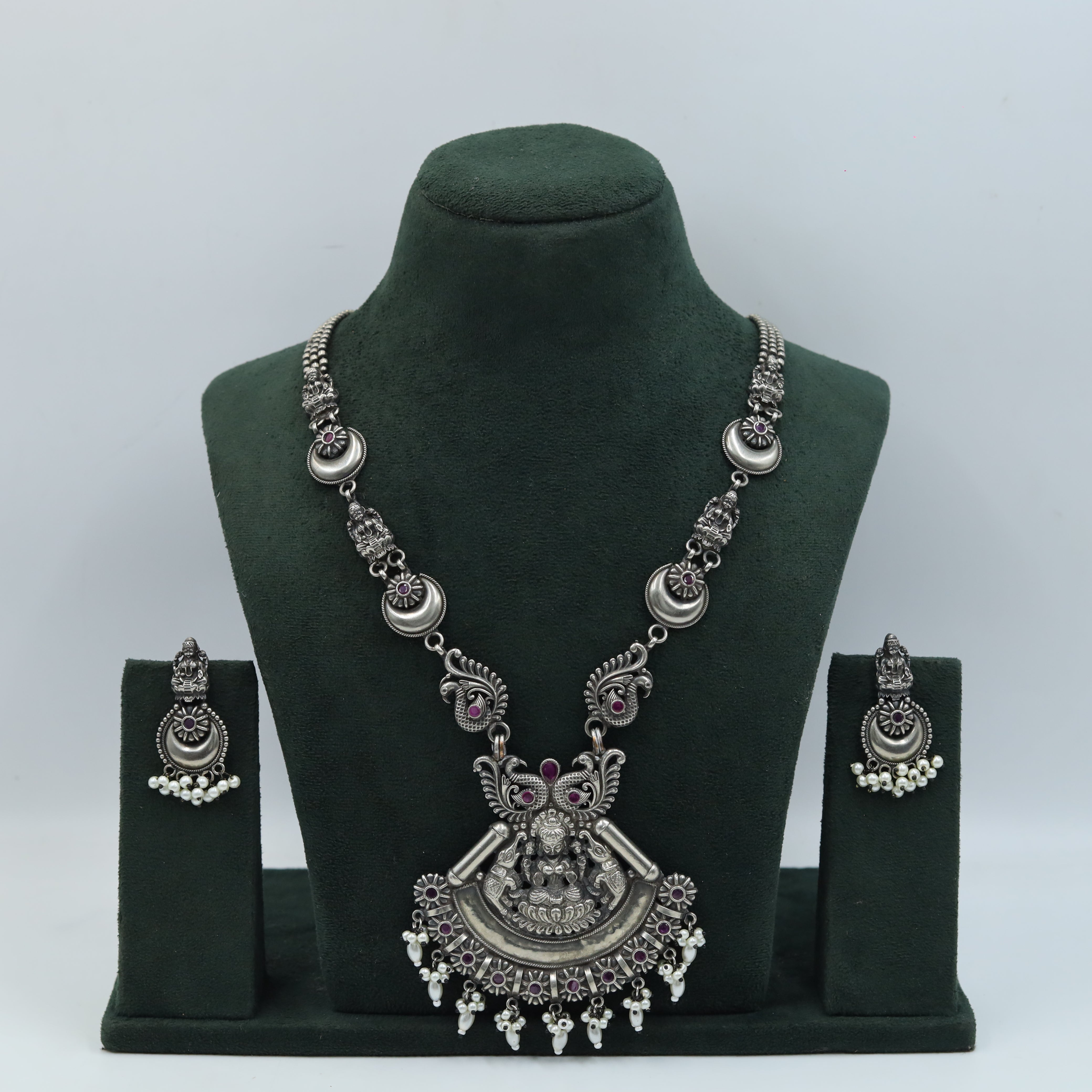 Set Contains - 1 Necklace + 2 EarringsEarring Closure - Push BackBase - Silver & Copper Alloy
