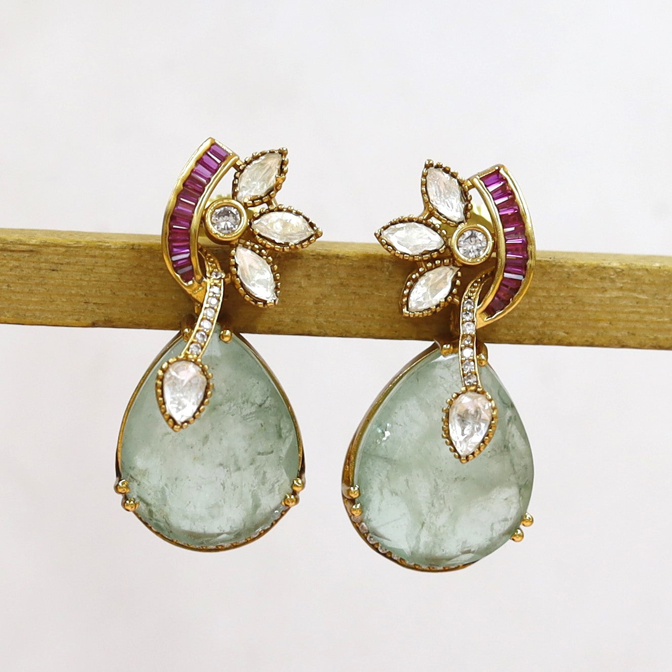 Mint Green / Antique Gold / Light Earring - Rs. 2,100.00