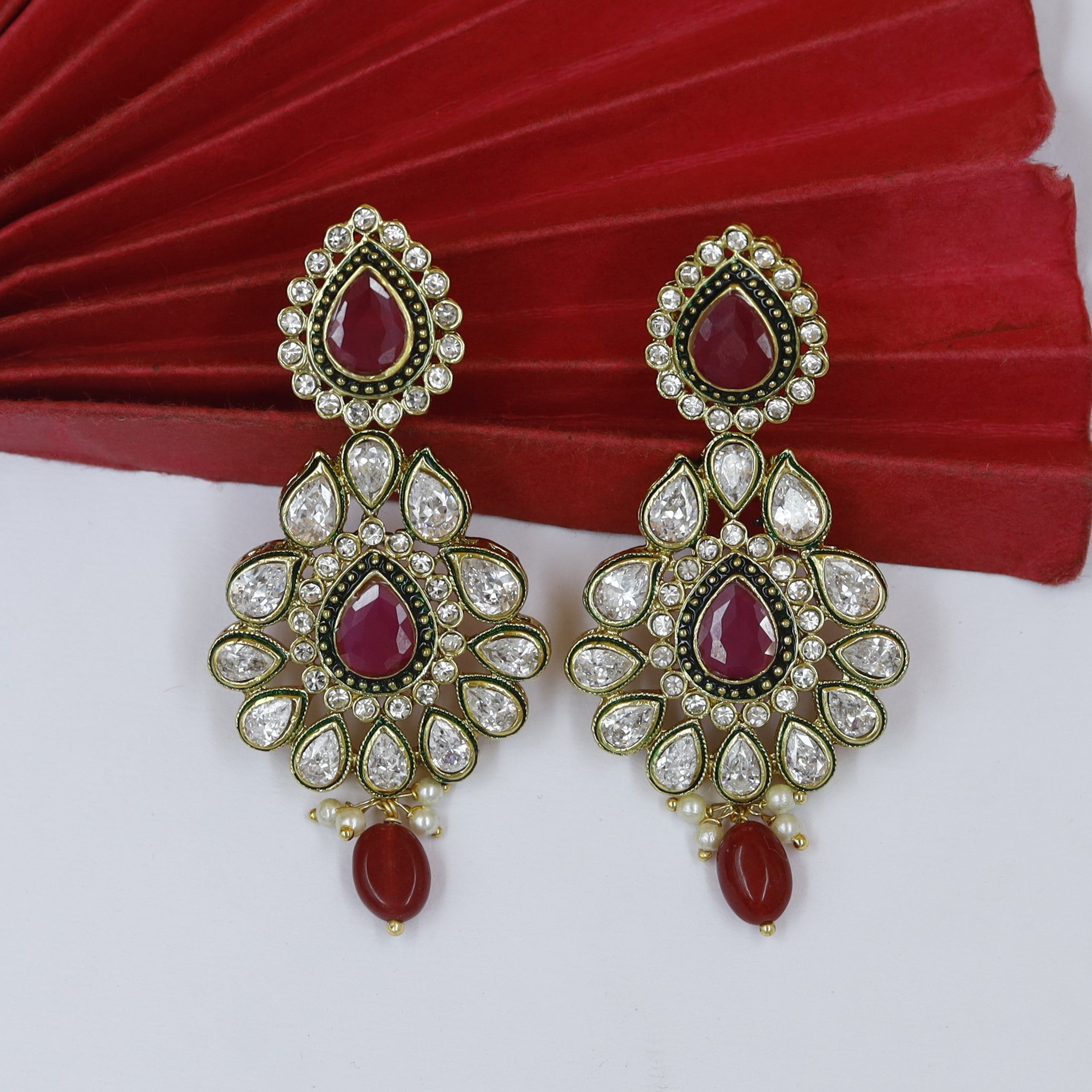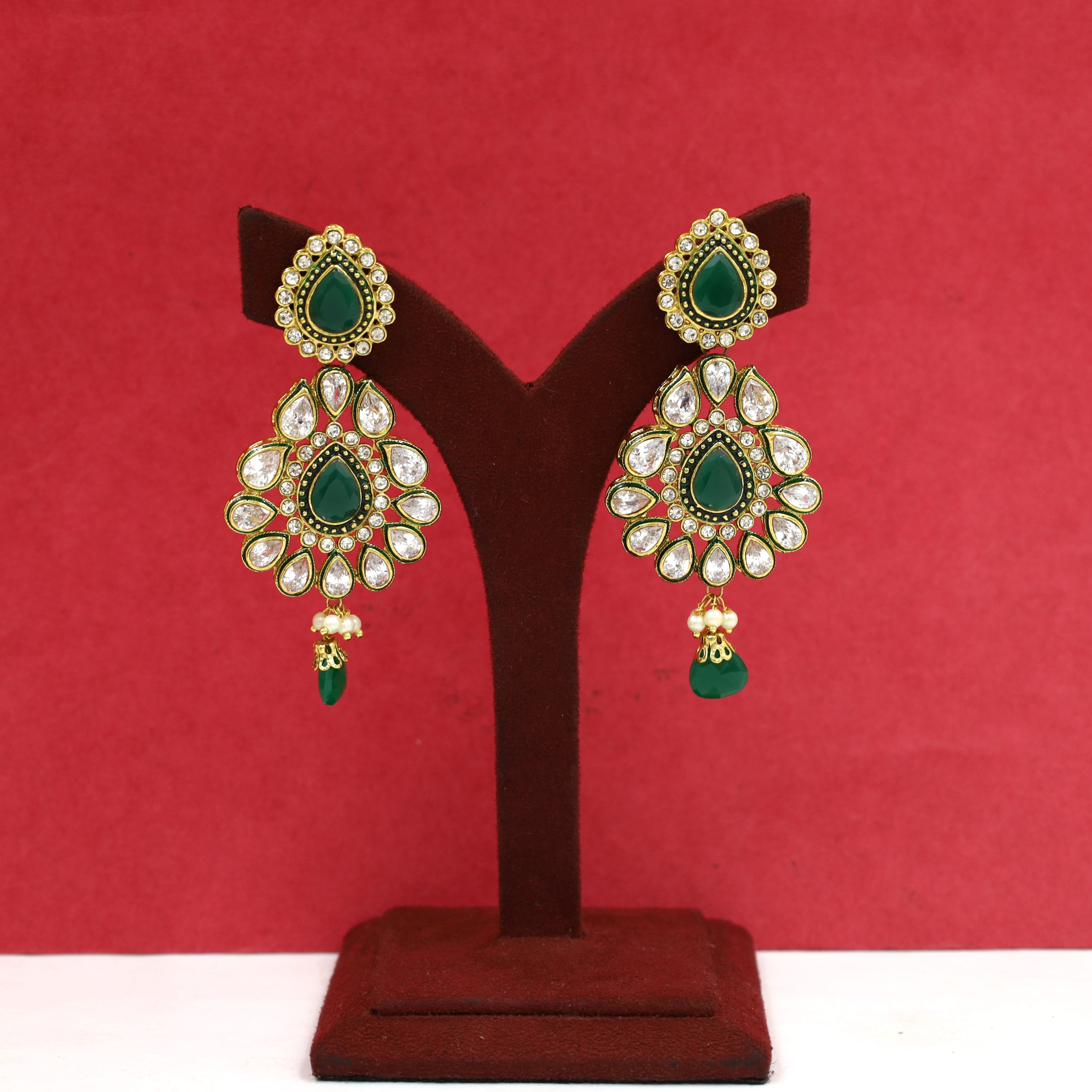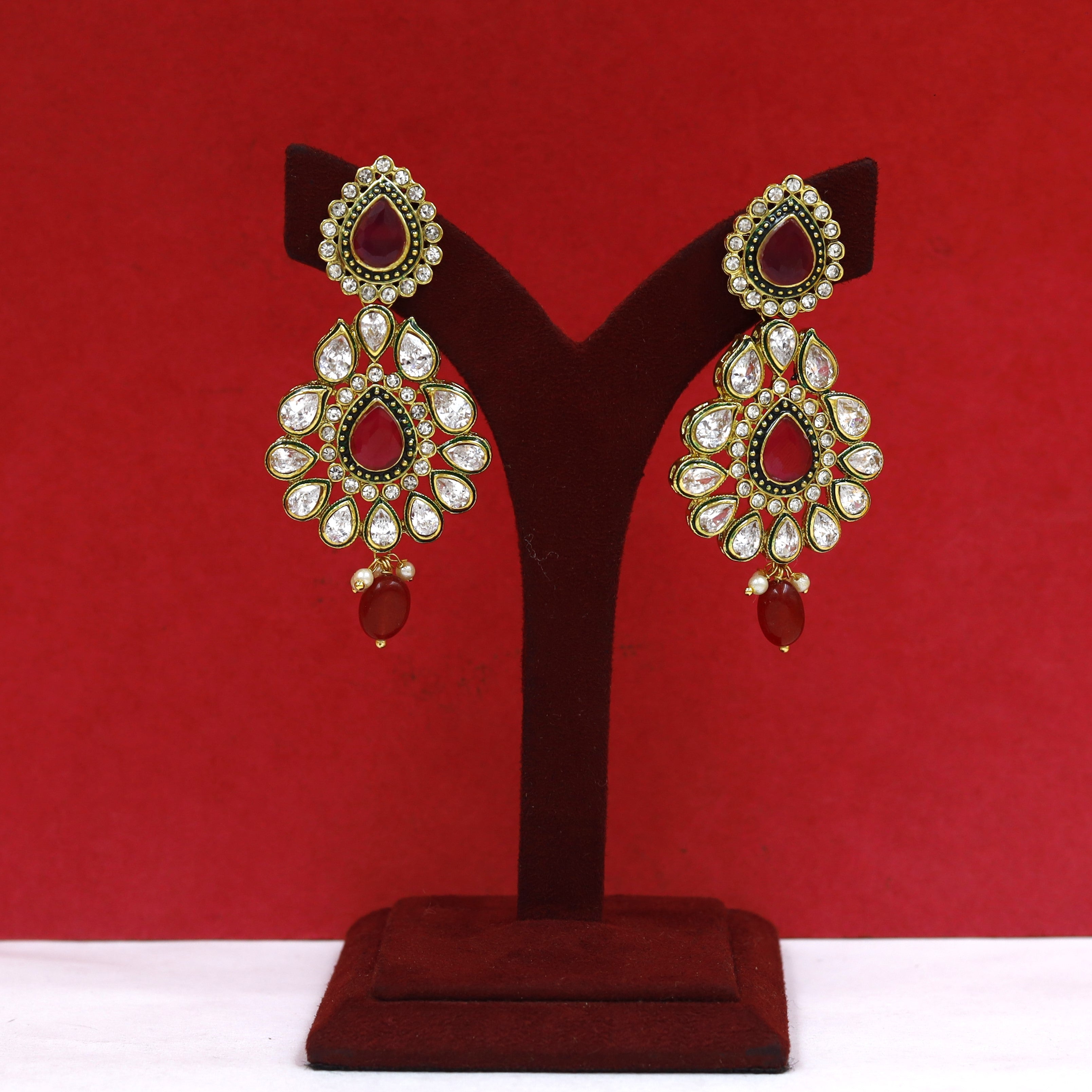 Our Polki Jhumki Earrings, a fusion of traditional charm and contemporary style. Adorned with exquisite single beads, these earrings are a statement of elegance. The stunning Polki centerpiece adds a touch of sophistication, while the jhumki design adds movement and grace. Elevate your look with these timeless earrings that combine tradition and trend seamlessly.