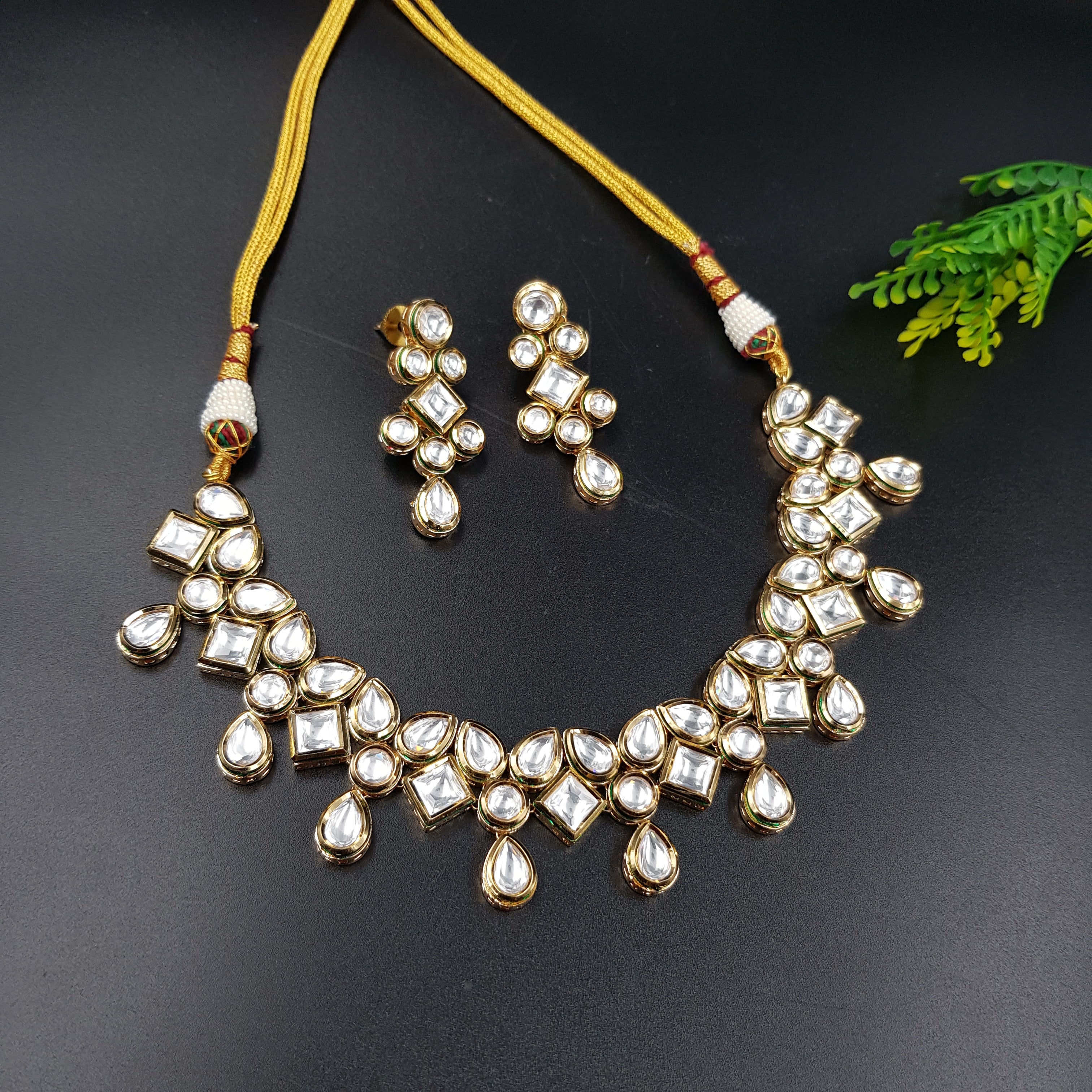 Base - Silver & Copper AlloyEarring Closure - Push BackNecklace Closure - Silk DoriPack Contains - 1 Necklace + 2 Earrings