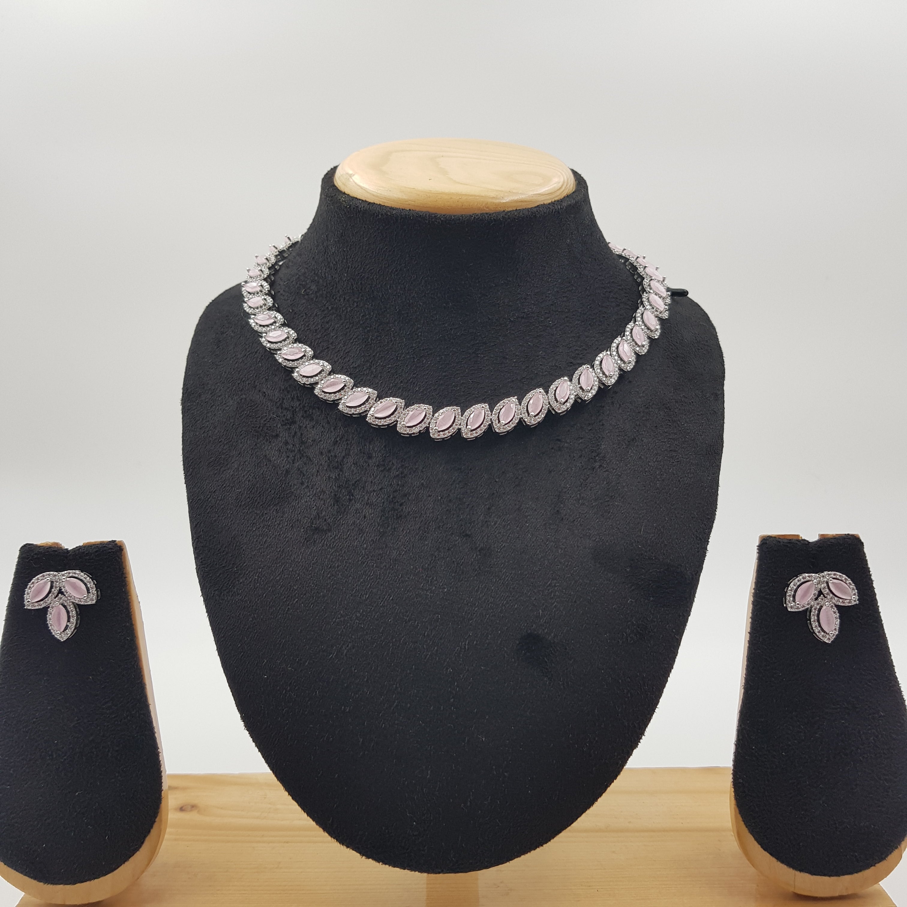 Set Contains - 1 Necklace + 2 EarringsNecklace Closure - Chain HookEarring Closure - Push BackBase - Silver & Copper Alloy