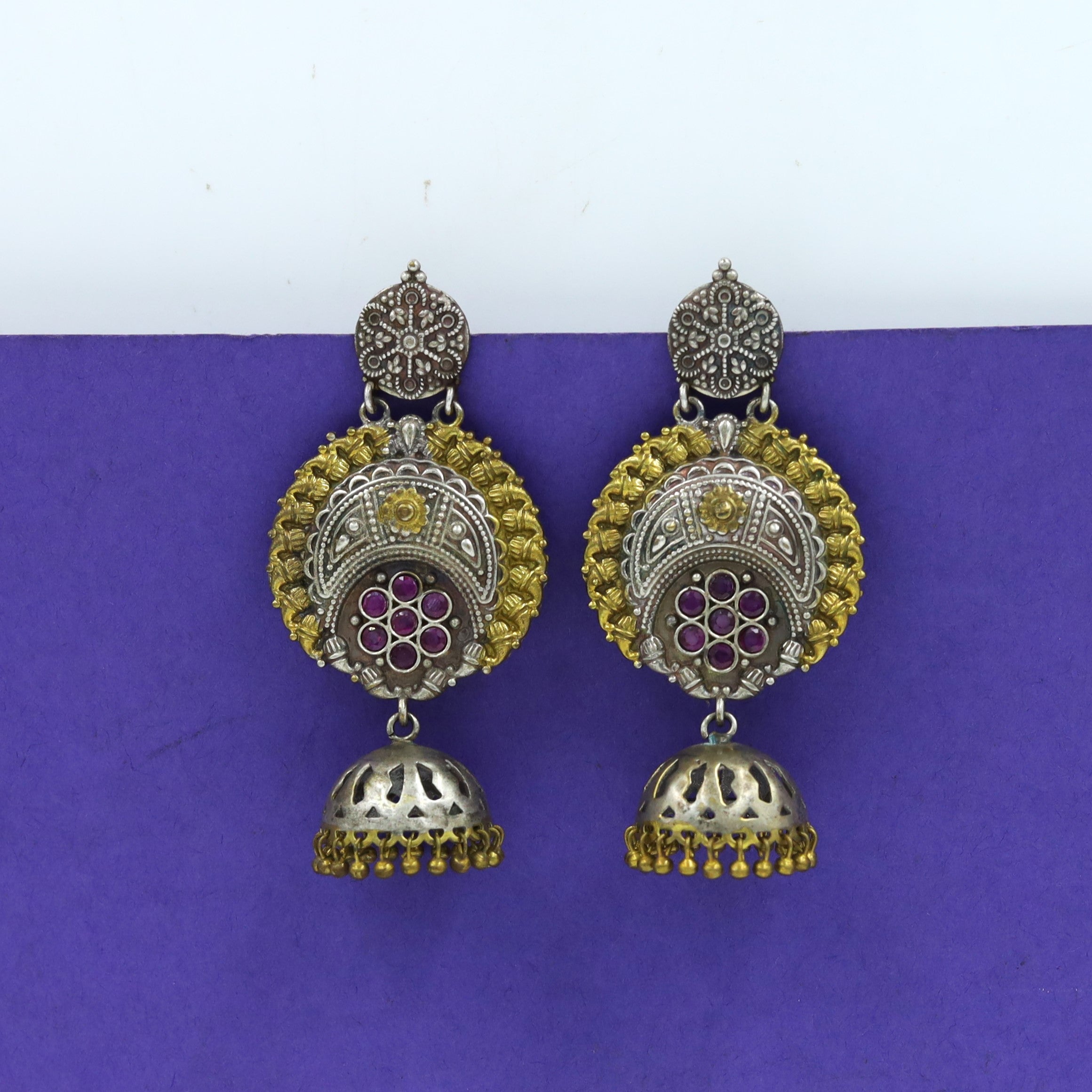 Type - JhumkiStone -Â Â RubyPolish - Gold, Silver