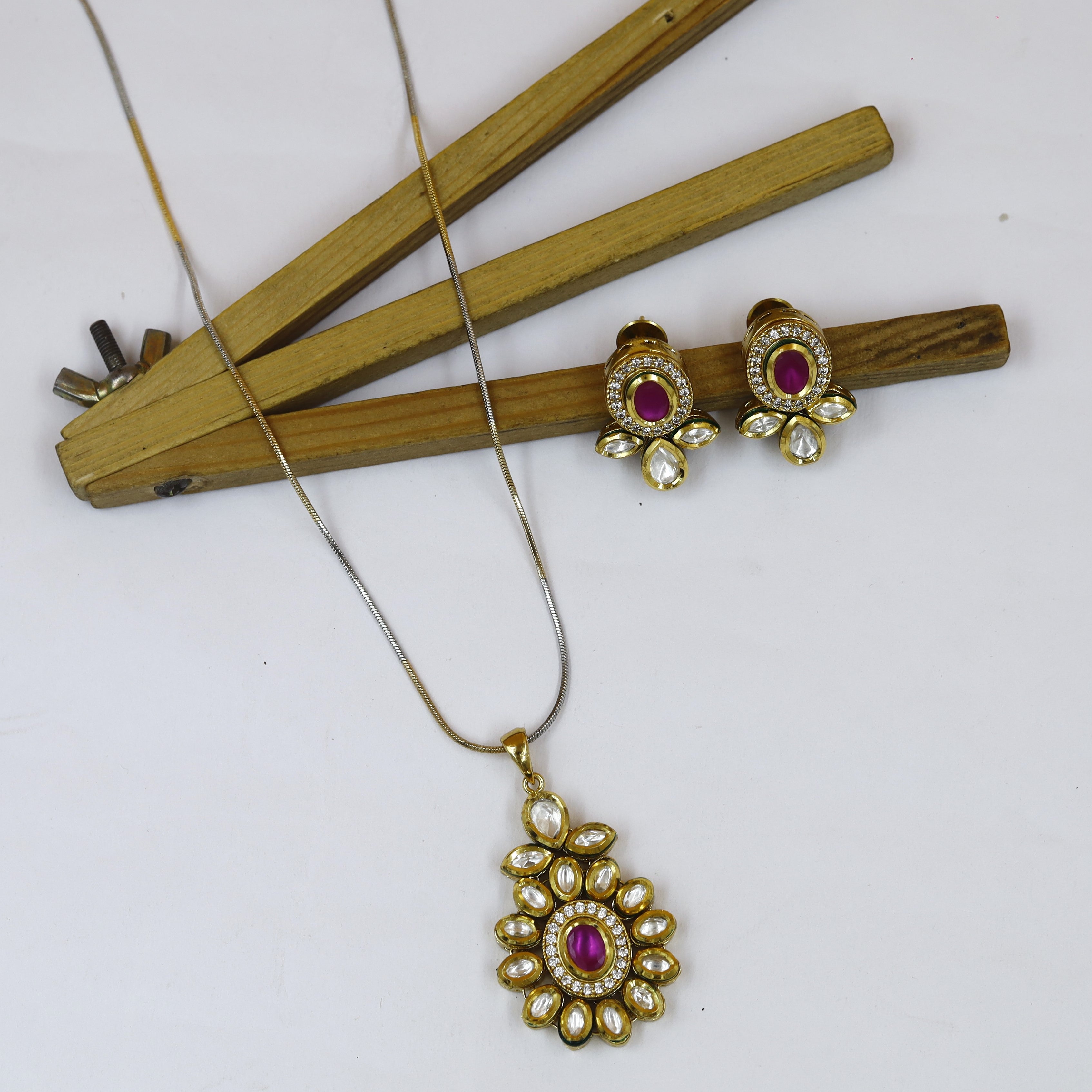 Base - Silver & Copper AlloyEarring Closure - Push BackChain Included - NoPack contains - 1 Pendant + 2 Earrings